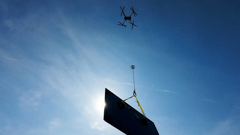 TCS Drone Operations hat spezielle Expertise im Transport von Photovoltaikkomponenten. Wir liefern bis zu 40 Solarpaneele pro Stunde genau dorthin, wo Ihre Techniker sie benötigen.
