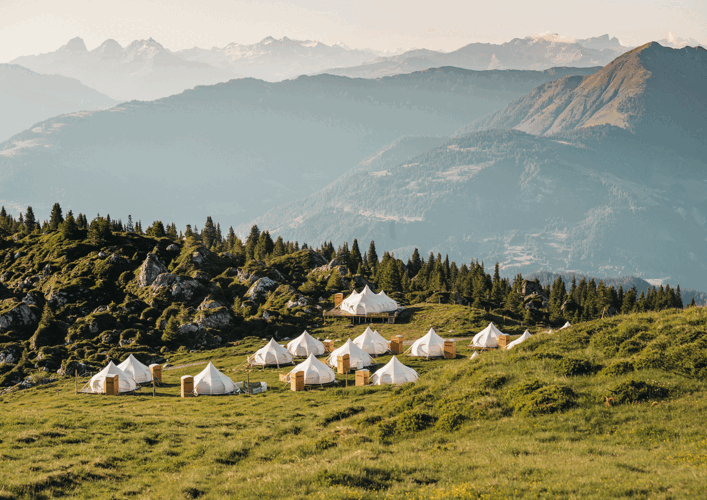 Das TCS Pop-Up Glamping ist am Puls der Zeit und widerspiegelt das Bedürfnis nach Entschleunigung in der wunderschönen Schweizer Bergwelt, ohne dabei auf Annehmlichkeiten zu verzichten. Die einzigartigen Aktivitäten tragen zum einmaligen Erlebnis bei.